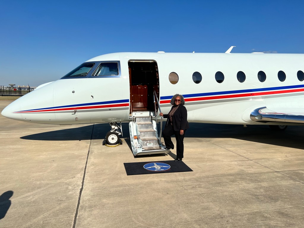 This is a picture of me realizing a dream after 30 years with the company, which was to fly on the corporate plane. I’m truly soaring!